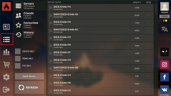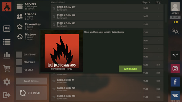 1、打开腐蚀rust手游,游戏需加速器启动,选择一个房间;