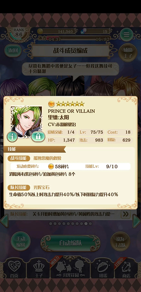 因为针对新手向,所以暂时不涉及有特别技能(封印.炸弹.变心等系列)的王子配队。