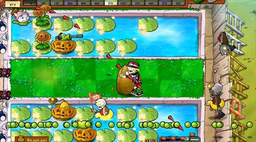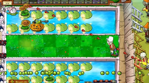 由于在房顶,所以直线的豌豆射手不能用了。