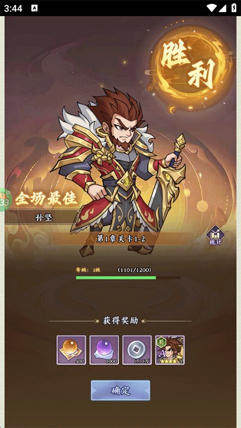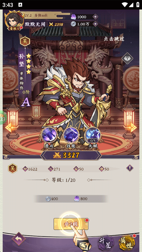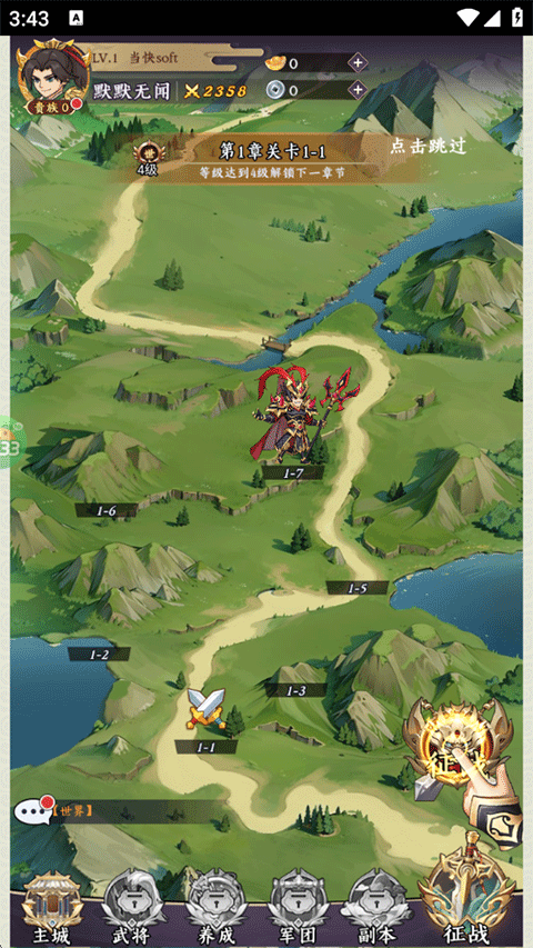 8、为新获得的武将进行升级,随后在之后的关卡中出战;