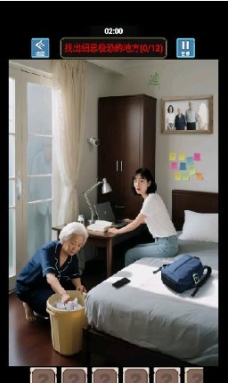 2、找出图片中细思极恐的地方,一共有12个,在两分钟时间内找到才能够通关。