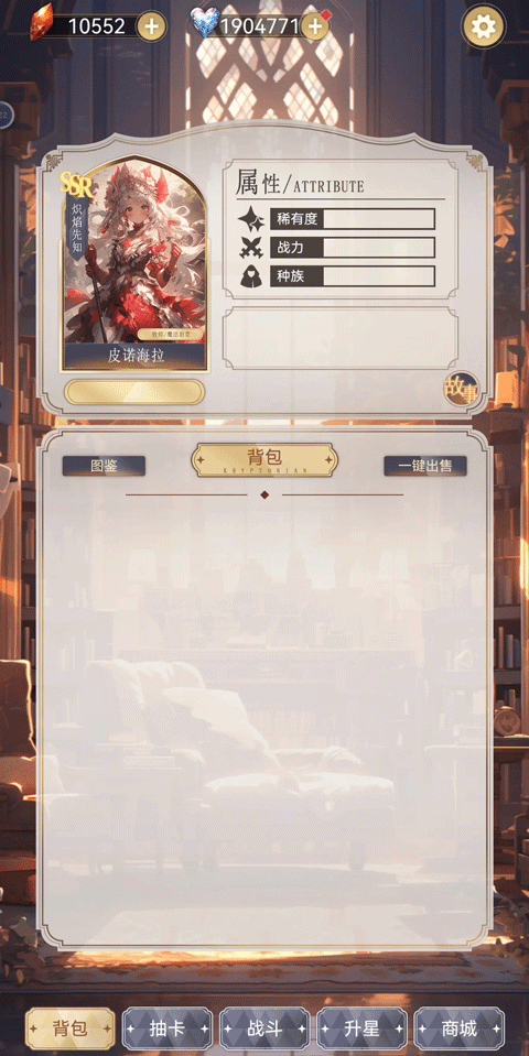 5、前期多抽卡,看哪张卡重复的多就主要去养那个角色,每种属性养两个或者三个重复多的,其他同属性ssr可以当狗粮喂,最后把战力高的凑个3+2去刷战斗。