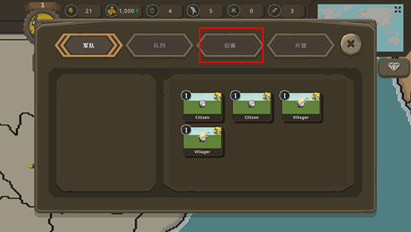 例如,如果你为一个领地选择食物,它会在回合结束后生产一些食物,您可以使用这些资源招募、解锁或升级单位。