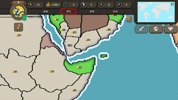 要使用外交,请单击领土并单击带有箭头的按钮。每个外交行动将消耗 1个外交点。