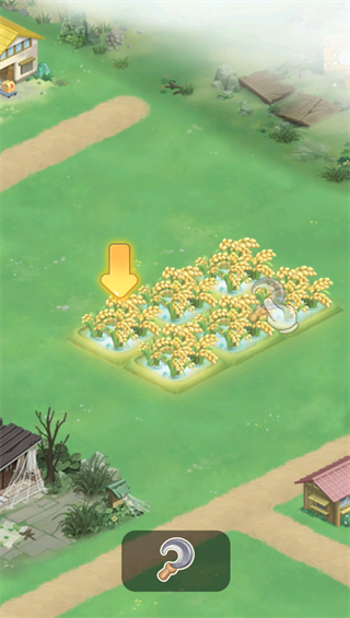 点击成熟的稻田,用镰刀工具收获作物,获取基础食材原料,支撑后续加工与贸易。