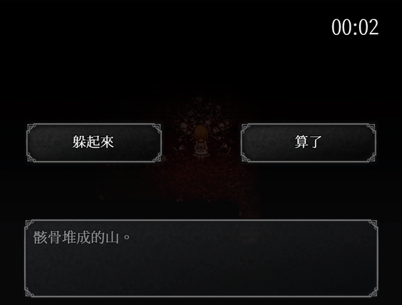 23、尽快走到中间的骨堆,调查,选择【躲起来】