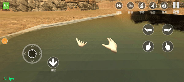 1、把其中一只手放在水龙头位置,点住手指图标,再往屏幕中间拖动拧开水龙头。