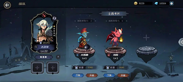 第三章开槽,副英雄推荐第一个拿黑暗元帅,主技能每局加黑兵,打副本的好手,缺点是对单局战斗0帮助,攻击成长低。养到后面我应该会为了技能用他当主英雄。