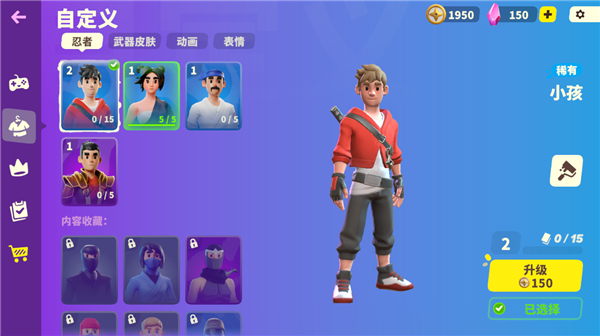 2、点击服装图标 可切换不同忍者角色,右侧的 粉刷图标 用于自定义外观。
