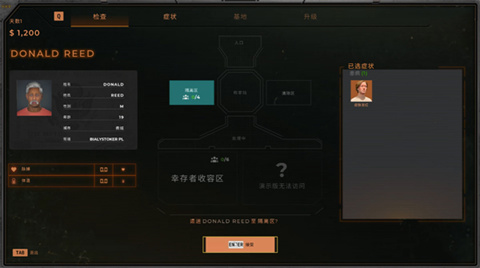 动用高科技工具,从惊魂未定的幸存者中筛查出感染迹象。在守卫检查站的同时,辨别出违禁品、管制物品,甚至是稀有的收藏品。将有可疑症状者送往隔离区观察、送往实验室进行深度筛查,或是将健康幸存者护送至生活区。至于那些已经显现感染迹象的人……哎,他们怕是在劫难逃。