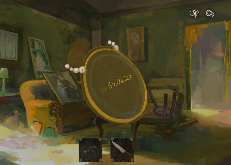 桌子台灯下有个吊坠(不太容易点到),保险箱转盘需要最上面的指针分别指67、02、29,在每个数字处稍微停顿一下,等到数字对应的卡扣消失后再转下一个数字,可以多等待一下,打开保险箱得到怀表,怀表里有页日记。