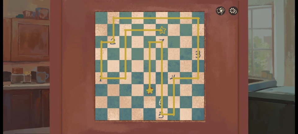 点击顶柜上的棋盘完成一笔画小游戏拿取扳手。