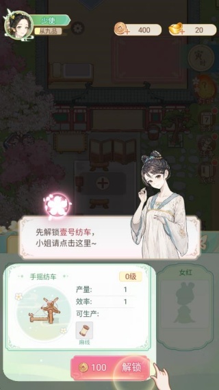 3、从女官开始,解锁纺车完成挑战任务;
