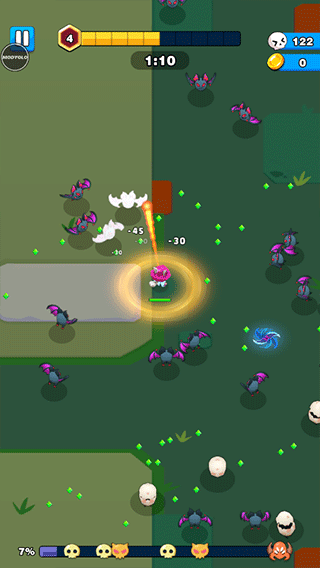 孤独的幸存者手游是一款卡通风格的幸存者类动作游戏,玩法轻松上手却极具挑战。玩家只需单手操控可爱萌系的角色灵活走位、闪避攻击,并持续向前方释放凌厉剑气,通过击败敌人获取经验与宝箱,拾取后即可提升等级,解锁更强大的技能。