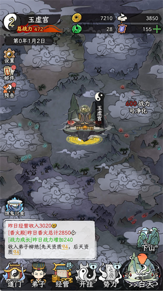 1. 经营管理:玩家需要合理安排道门的资源,提升道门的综合实力,包括弟子的培养、道器的炼制、坊市的经营等。
