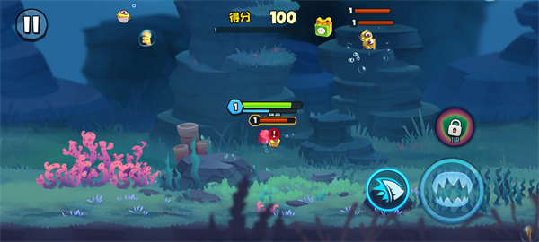 4、当攻击比自身弱小的鱼类时,会触发伤害提示,持续捕食可快速提升等级与分数,增强生存能力。