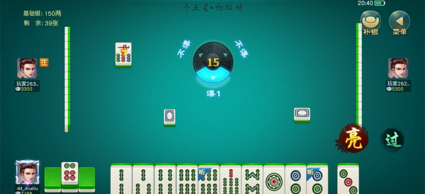 卡五星游戏玩家按逆时针轮流出牌。抓牌按顺时针抓牌。可碰杠,不能吃。