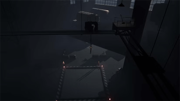 接下来是一个房间,背景中有两个机器人类装置,右侧是电梯,左侧是杠杆。向右跑去打开电梯,然后再按下拉杆。电梯打开后,拉动启动机器人探照灯的杠杆。你想在不被发现的情况下到达电梯。在合适的时机躲在柱子后面,避免成为聚光灯下的焦点。到达右侧电梯,按B键激活电梯。