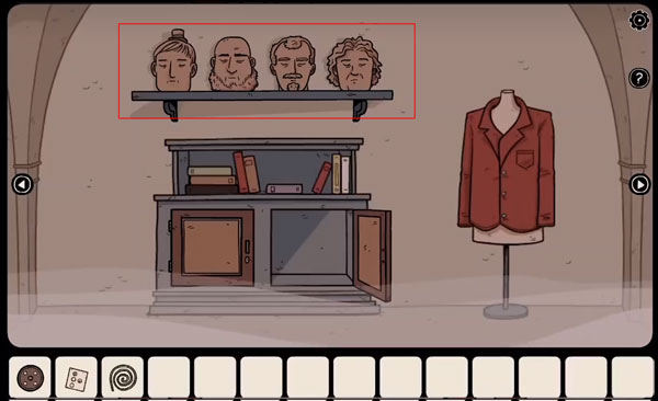 8、点击四人头像墙面,按特定顺序(参考打字机输出内容)逐一点选,激活隐藏机制。