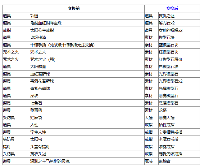 3、仅有特定物品能交换,一种物品限交换1个。