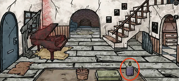 7、切换到卡丽莎拿走楼梯间的油壶,再根据黑色笔记本里的提示切换到巴斯蒂安将玩偶放在厨房门口的黑色手中解除禁制。