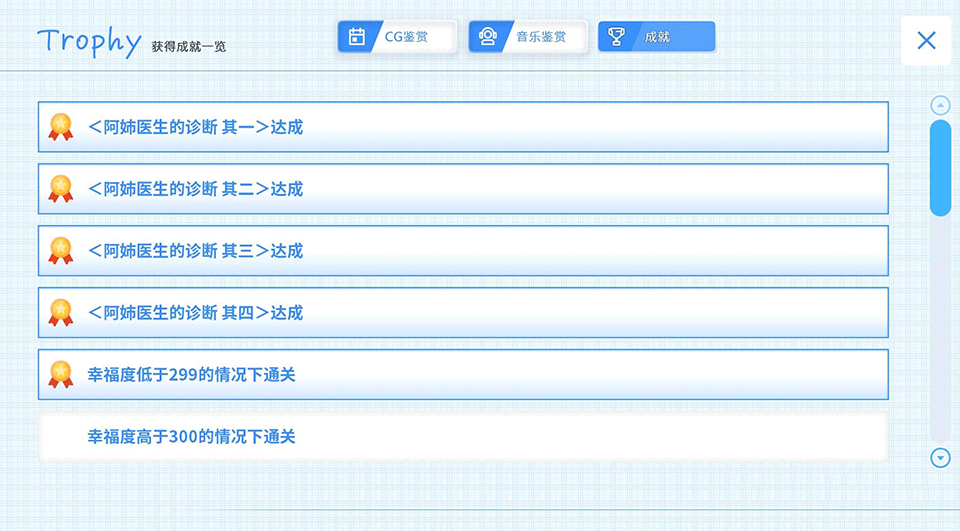 6、总体上来说流程并不是特别长,但是整体规划还是有些难的,即使游戏给了一些容错率(如可以延后检查时间等),不看攻略的话,一两周目不可能收集完所有CG