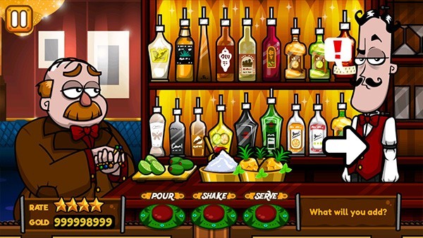 5、从基本饮料开始,例如莫吉托(Mojito),Pina Colada和Negroni。根据食谱学习它们,并培训他们的准备工作,直到不再需要食谱预览为止。尽快提供最优质的饮料!您的鸡尾酒和饮料将根据配方和食用方式,在不同的水平上进行评估,并考虑准备时间。制作您自己的原创饮品,为您的客人服务,并观察他们的反应。当您找到客户最喜欢的饮料时,将其添加到饮料菜单中,并根据自己的喜好命名。