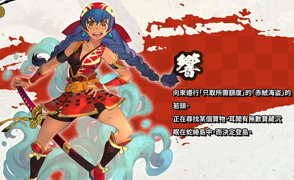 “赤鲳海盗”的水手长,为了辅佐正在寻找宝物的响,而加入她的蛇蜷岛探险之行。