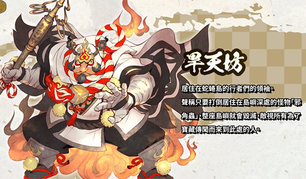 居住在蛇蜷岛的行者们的领袖,声称只要打倒居住在岛屿深处的怪物邪角虫,整座岛屿就会毁灭敌视所有为了宝藏传闻而来到此处的人。