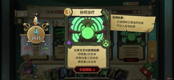 核心卡 有人回血你就加钱 并且是个永久效果 但要求每回合都有人回血