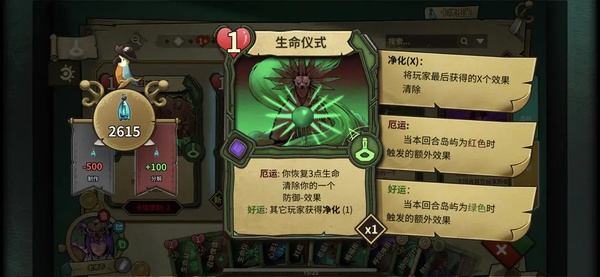 9.绿岛就出加分配的卡和带【好运】的卡;红岛就出加防御的卡和带【厄运】的;黑岛就出加生命的卡和带【险境】的卡。