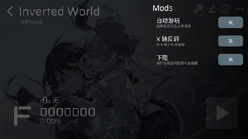 点击右上角扳手图标会在屏幕右边显示3个模组,分别为自动游玩(Autoplay)、X轴翻转(左右镜像)、下隐