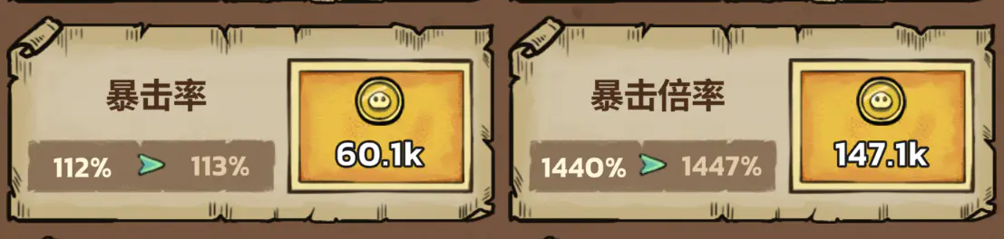 2、暴击几率 & 暴击倍率:这俩是亲兄弟,必须一起点,后期伤害爆炸的来源。