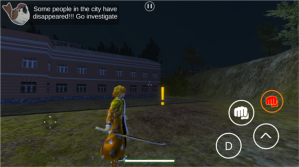 2、进入游戏后玩家将扮演善逸进行畅玩,你将跟谁着黄色感叹号来完成任务;