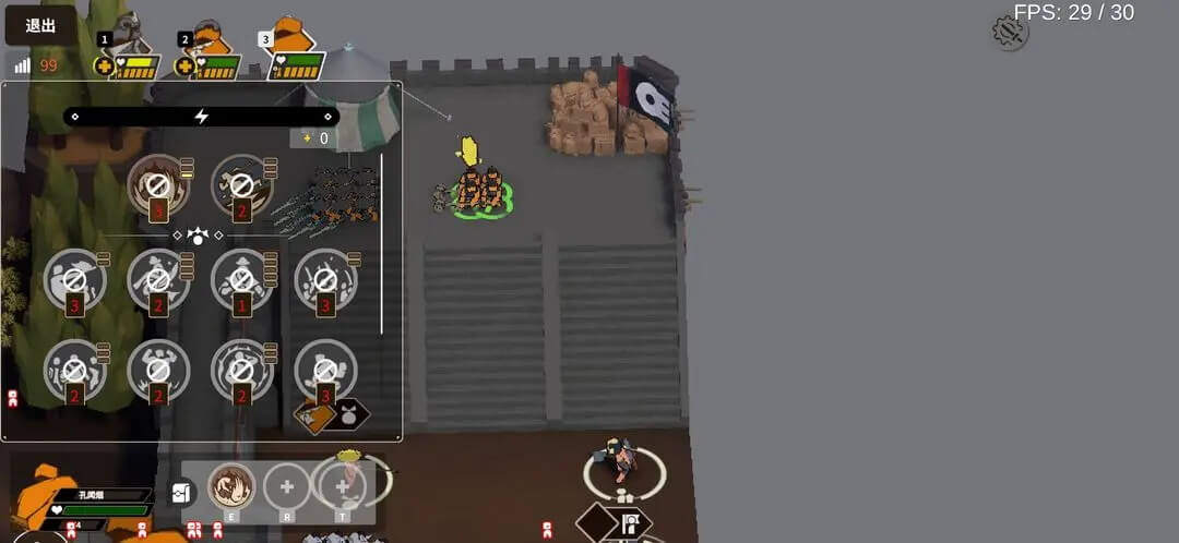 (1)图片第一个技能得要在城墙或者高处地方才能释放(水平面无法使用);
