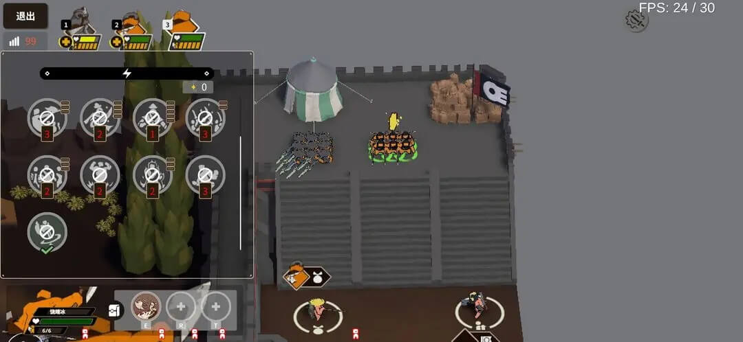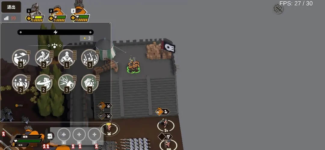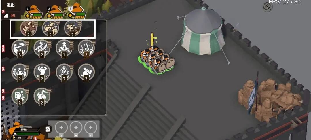 1、新手一般进来只能打第一个人机对战。刚开局新人只有盾兵,那么我们直接买两队盾兵,两队盾兵都点人口技能,不要点其他的,如果后面点满了就点血量;刚开始玩可能不太会切换部队,如果要切换部队的时候需要点两下你要控制部队的头像,才能切换成另一个部队进行操作。