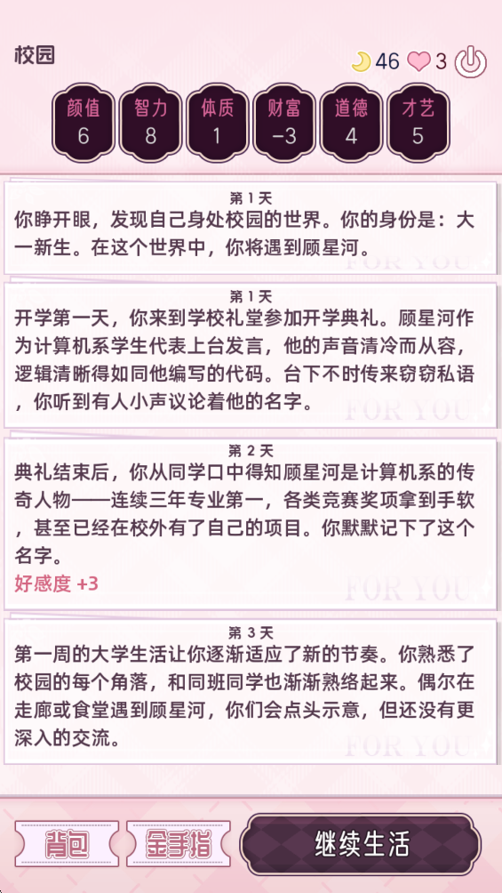 3、注意气运之子的心情,选择合适的选项与之互动,提高好感度,获取更好的结局。
