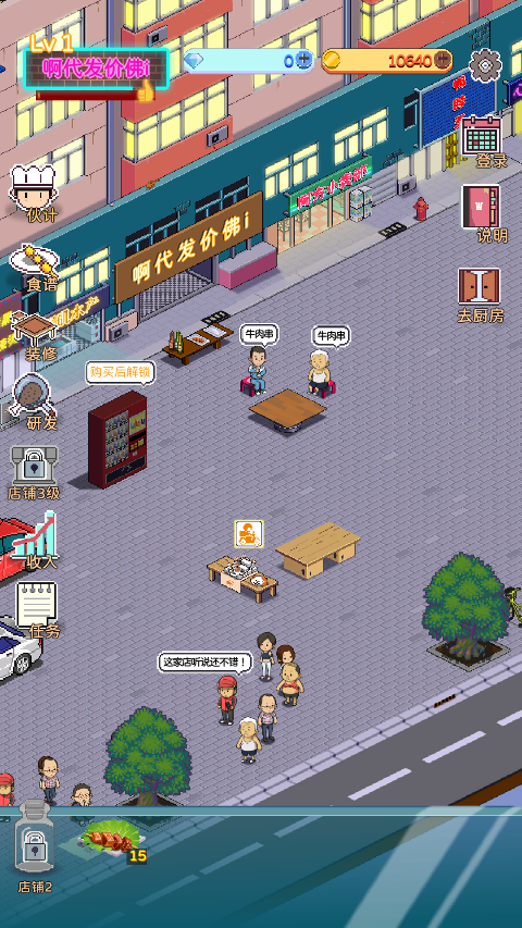 小店虽小,但是琐碎不少。作为老板的你要合理的制定菜谱、购买设备、雇佣员工、装饰环境等等。