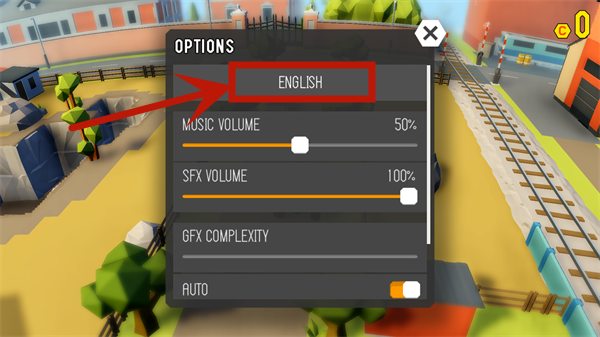 1、在本站下载并安装鲁莽大逃亡2最新版后进入游戏,可以看到游戏默认为英文,此时需要点击右下角的设置按钮