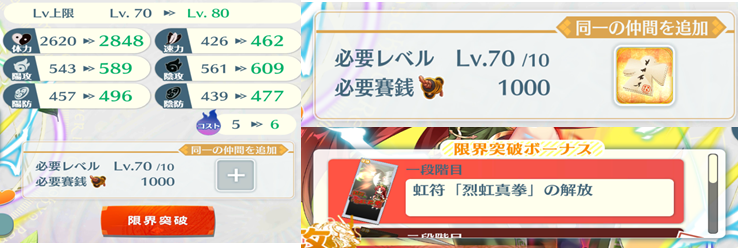 当角色达到指定等级之后,可以通过消耗同一角色进行突破,突破会增加等级上限,同时解锁新符卡,当突破两次之后第三次会开启LW极意符卡。