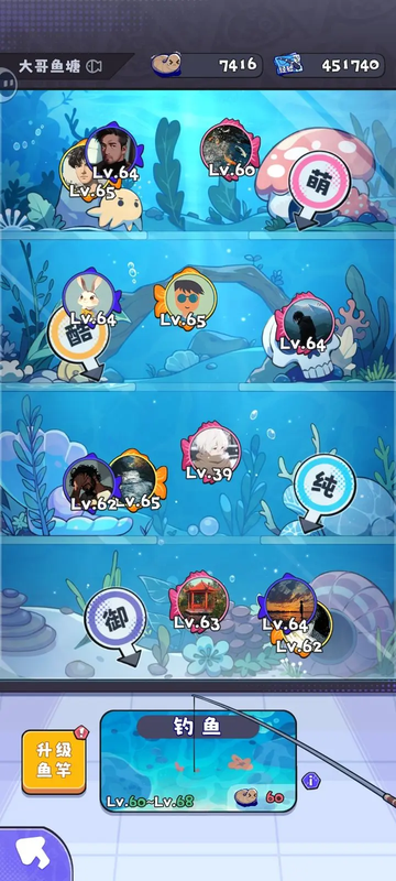 大哥鱼塘:可通过钓取大哥的办法在PK的时候获得打赏,增加取胜可能性,等级只能升到老板办公室最低等级主播类型的等级