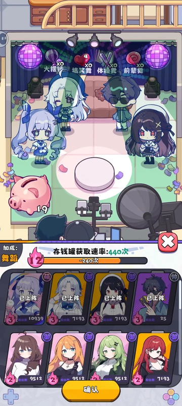 直播间玩法:通过挂机获得主要资源,可以在“编辑”处添加主播特高存钱罐获得效率,等级越高获得“存钱罐”的时间越快