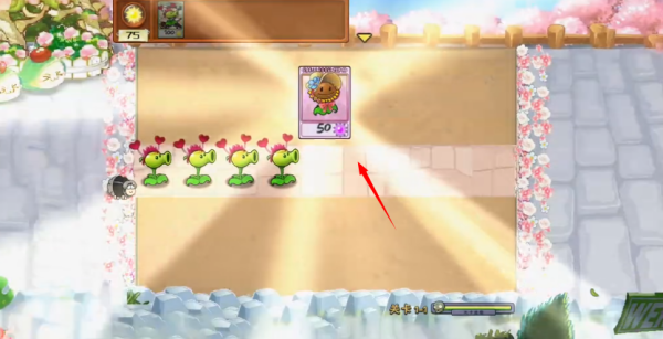 2、正式开始闯关后通过放置各种植物来抵御美人僵尸