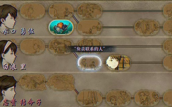回到路线图,选择白浪里线的“负责联系的人”,选择从头开始,这次过完前置剧情进自由对话环节后不要急着对话,回头看地上有个小乌龟钥匙扣,把它捡起来再推进剧情就能进入分支“夺取”。