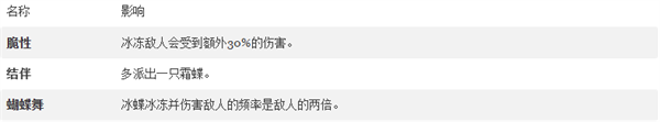 她的技能还不错,每六发射击就会派出一只蝴蝶,缓缓沿直线飘动,冻结敌人或对他们造成伤害,如果他们已经冻结,你的子弹伤害值。不过,只有当你掌握了几项冰元素魔法技能后,它才真正闪耀。不过一旦你准备好了,你几乎无懈可击。