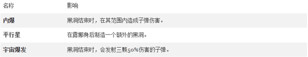 技能升级后,你可以在她对面生成另一个黑洞,并让黑洞造成伤害。通过合适的升级,如果你能在前一个黑洞消散前开火并装填武器,实际上可以布置多个黑洞。