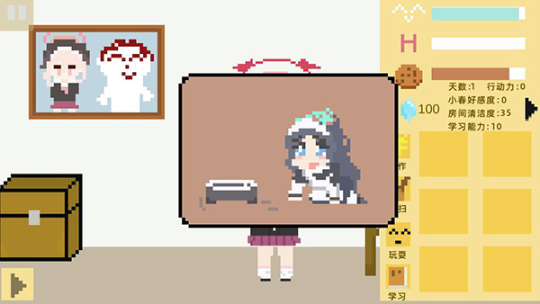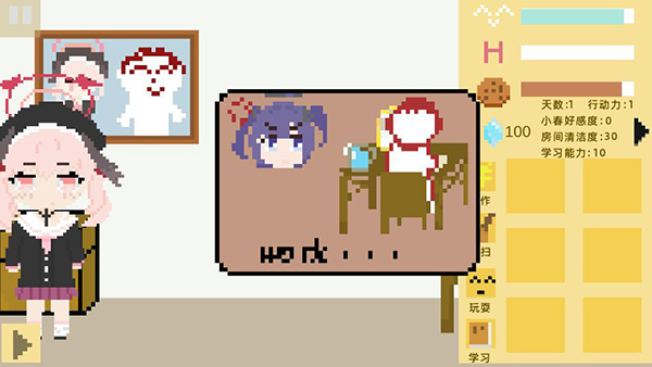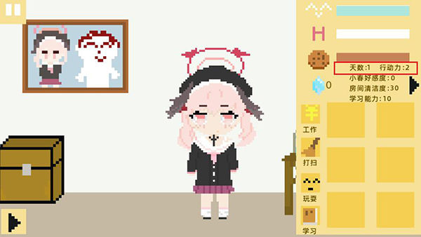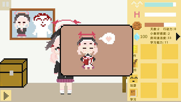 4、打扫卫生可以提高房间清洁度,一个好的环境可以防止小春心情值快速降低哦。
