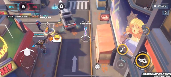 1、采用了大胆的街头风格视觉设计和增强动画,涉及6个深受玩家喜爱的英雄,包括治疗英雄 kiriko和天使,其治疗和支援能力在俯视角下视觉效果更震撼。