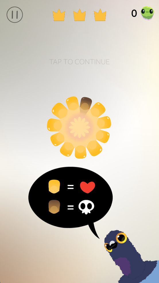 3、操控鸽子吃掉玉米粒,但要小心坏掉的玉米粒,否则游戏失败