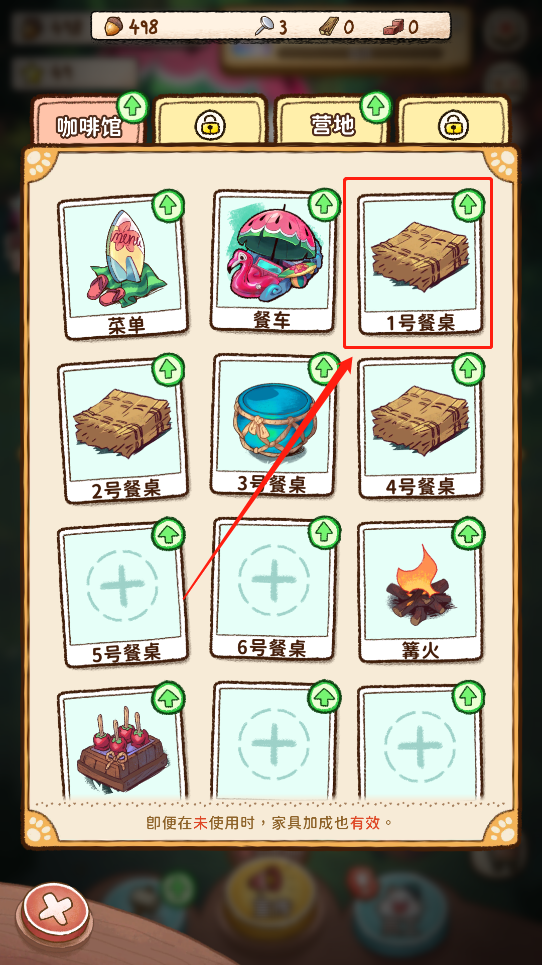 3、找到可以购买并升级的餐桌如“鼓形餐桌”,并点击购买;